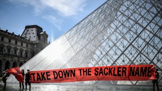 The artist friend whom Quinn represents is the photographer Nan Goldin, whose international reputation is built on an intimate, ruthless chronicling of her life and those she’s known. Goldin became addicted to OxyContin after a doctor prescribed it for tendinitis in her wrist. She lost three years of her life chasing opioids. When she got clean, she organized a group with other artists and people who had survived opioids or lost family members to opioids: Prescription Addiction Intervention Now, or PAIN. They focused on stripping the Sacklers of their reputation as patrons of the art world, with protests at some of the very institutions that supported Goldin’s work: the Metropolitan Museum of Art (which even has a Sackler Wing), the Guggenheim, the Louvre.