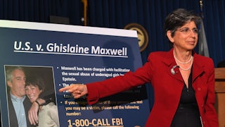 As for Ghislaine Maxwell, she became Epstein’s highest-ranking lieutenant in a diabolically conceived sex-trafficking ring that allegedly furnished young girls to rich and powerful men from around the world, including heads of state like former Israeli Prime Minister Ehud Barak. According to reports from dozens of victims, Maxwell was Epstein’s main procurer of underage girls and his general manager and fixer in what amounted to, in the words of Spencer Kuvin, a lawyer for some victims, “a pyramid scheme of sexual abuse, with Jeffrey Epstein at the top.” Maxwell was with Epstein constantly, jetting with him and a who’s who of the rich, famous, and politically powerful between estates in New York, Paris, New Mexico, and the Caribbean. (In Epstein’s Shadow, the international scope of the operation goes mostly unconsidered.) She also personally participated in sexual abuse, according to several alleged victims.