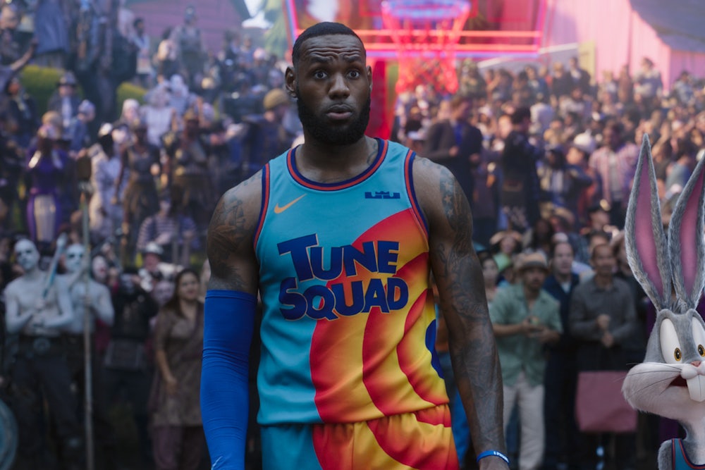 There is a moment near the end of Space Jam: A New Legacy, the new Looney Tunes–LeBron James crossover product that is less a movie and more a vacuous advertisement for WarnerMedia’s intellectual property, when Bugs Bunny, having just air-balled a buzzer beater, appears to die. “That’s all folks,” a bleary-eyed Bugs moans before slowly floating heavenward as a rabbit-shaped beam of light.