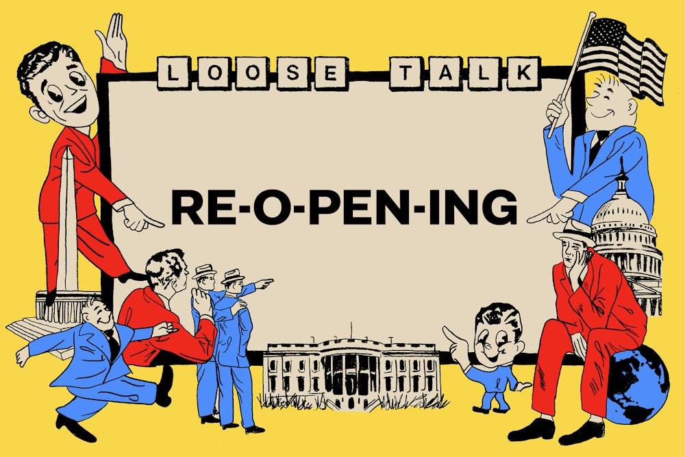 The American business system is sustained by many imaginative turns of phrase that tell us that our working lives, which are generally boring, hot, tiring, frustrating, and painful, are actually a theater of weightless magic and artistic whimsy. We are told, for instance, that risk-taking entrepreneurs (rather than self-dealing executives) and creative innovators (instead of overburdened workers) drive capitalism. But that fantasy relies on another, central myth: that of “the marketplace.” We all know the marketplace is an abstraction, but we talk about it like a medieval market town, a bounded place where we arrive with our ideas, skills, products, and labor and compete for the fair rewards of a free economy. That’s why we can talk, against logic and our own experience, of “reopening” the American economy as though it were a public square that could simply be opened and shut. But Covid, not unlike the market itself, is persistent, and pervasive. If only entering and exiting the pandemic were as easy as our governors suggest.