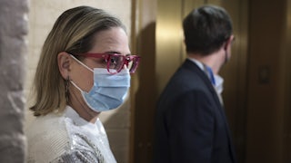 Just last week, Mother Jones broke the story that Manchin had been contemplating leaving the Democratic Party to become an independent. After initial angry denials, Manchin confirmed the rumors, although he insisted that he would, in any case, continue to caucus with the Democrats. And while Kyrsten Sinema is significantly to Manchin’s left on issues such as climate and abortion, it is possible to imagine her abandoning the Democrats out of pique over the rage that has been directed at her by party activists.