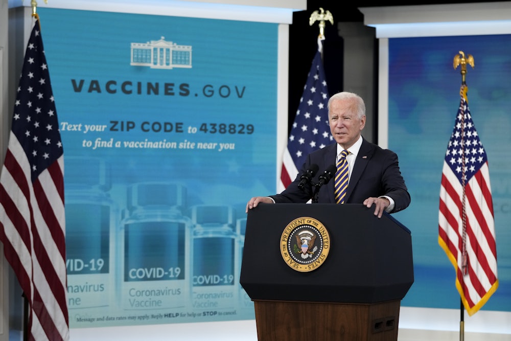 So why doesn’t the Biden administration just call it a testing mandate or something like that? The White House’s use of the phrase “vaccine requirement” suggests that it’s trying not to use the phrase “vaccine mandate,” while also trying not to say, “It’s not a vaccine mandate.” Perhaps the most likely answer is that the administration wants Americans to think there’s a massive federal vaccine mandate without actually risking the legal or political consequences of imposing one. It’s more practical—and perhaps more quintessentially American—for the government to outsource a coercive policy goal to the private sector instead of doing something itself.