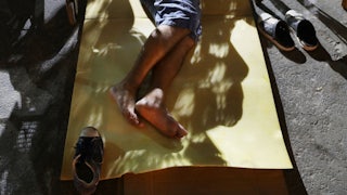 The extended-stay motels and informal campsites are both hidden in Florida’s economy: One group lives as pretend tourists, the other is obscured by palms and split oak trees. While the state markets itself as a place to retire in giant geriatric preserves like The Villages (a master-planned 55-plus community of over 130,000 people), many older people also live in places like the unbecoming strip of Route 192, constantly worrying about where they will sleep next.