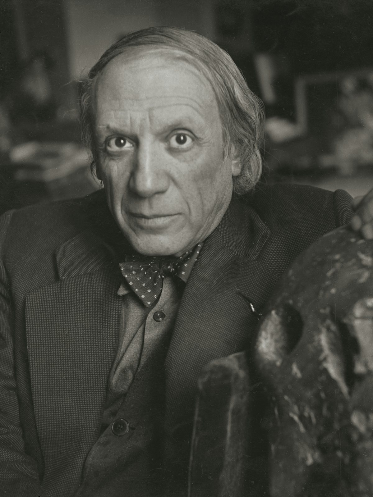 The frontispiece to the book is a striking photograph of Picasso, taken by Lee Miller in—you guessed it—Mougins in the South of France in 1937. The painter is seated side-on to the camera and delivering to the lens his famous mirada fuerte, or strong gaze, “prized by Andalusians as a source of sexual power,” Richardson informs us, and he goes on to say that “the equation of vision, sexuality, and art making is the key that often unlocks the meaning of Picasso’s work.” The largeness, and the vagueness, of this statement are typical of Richardson at his worst—though one must add that in this final book, written in his eighties and nineties, he is more often at his best.