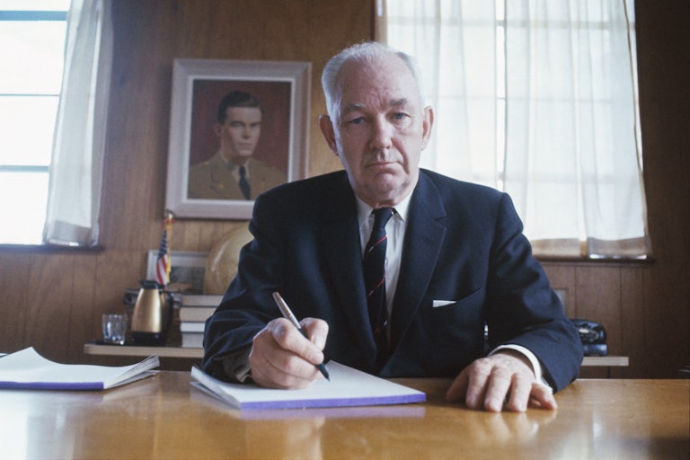 There was nothing in Robert Welch’s early life to mark him as such an influential prophet of right-wing reaction. The eldest son of a long-established farming family outside of Elizabeth City, North Carolina, Welch stood out mostly for his extreme intellectual precocity. At 12, he “became the youngest student ever to enroll at the University of North Carolina,” Miller writes, and studied widely, concentrating on math, philosophy, German, French, and poetry. After he graduated at 16, he enrolled at the U.S. Naval Academy, narrowly missing service abroad during World War I. The regimentation of Navy life didn’t sit well with the teenager, however—Miller describes the young Welch as a “Huckleberry Finn” and “a free spirit with a hint of adventure and mischief”—so he contrived to be released from an officer’s commission.