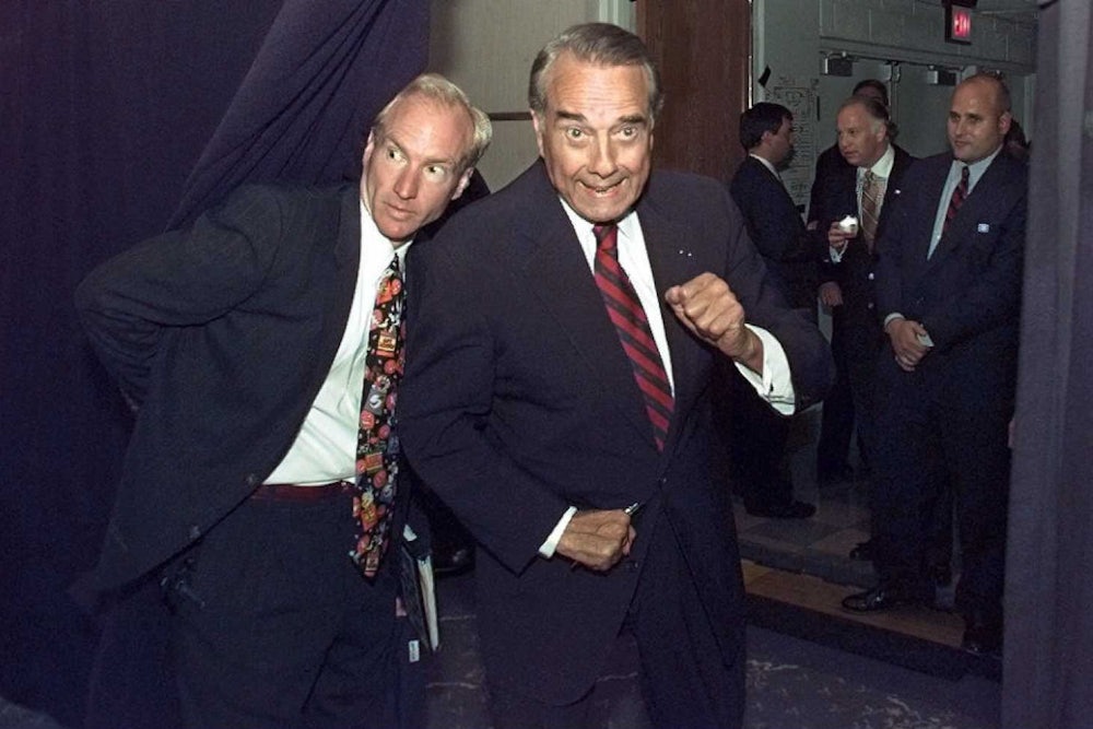 In hindsight, 1988 should have been Dole’s year. For all Dole’s disdain for supply-side economics and its devoted practitioners, he was a better heir to Ronald Reagan than the patrician changeling who served as vice president for eight years. The Bush campaign that year was run by Lee Atwater, whose low-road tactics were a pointed contrast to the now-misty memories of Bush’s subsequent one-term presidency. Dole famously snapped at Bush on television as the New Hampshire results came in, “Stop lying about my record.” Dole had a point. The Bush campaign won the primary, in part, because of a cynical TV ad claiming that “Bob Dole … just won’t promise not to raise taxes. And you know what that means.”