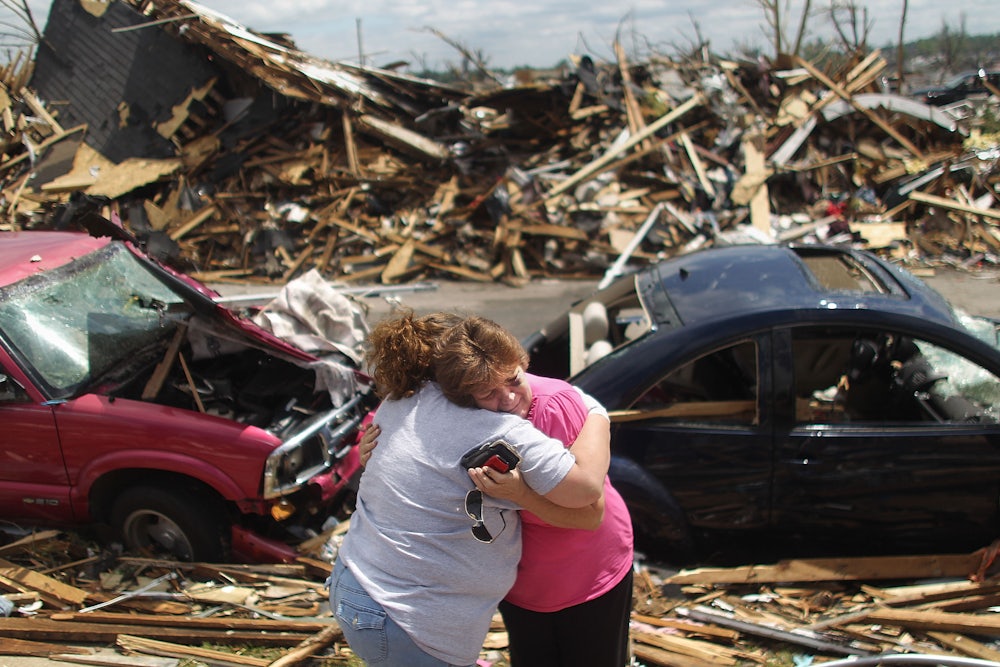 A rash of unprecedented tornadoes ripped through the South and lower Midwest last Friday. Scientists believe there were upward of 30 tornadoes in the batch; one carved a path of 223 miles, which would be a record if confirmed. The human devastation has been unparalleled. Ninety people have been confirmed dead, dozens are missing, and thousands more have been injured—not to mention the loss of livelihoods and property.