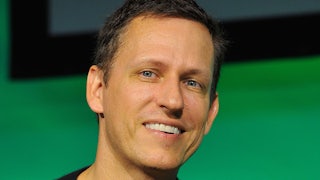 By 2014, it was becoming less and less plausible for anyone with even passing contact with the tech industry to deny knowing who Peter Thiel was. Not only was Thiel the former CEO of PayPal, but the first outside investor in Facebook, and an adviser to Mark Zuckerberg. In 2010, the vulpine, graying CSI alum Wallace Langham played Thiel as a cutthroat mentor in Aaron Sorkin’s movie The Social Network. The following year brought the launch of the Thiel Fellowship, which offered kids under 22 $100,000 if they would forgo college to found startups, a stunt that eventually landed Thiel on the cover of Newsweek. His 2014 book, Zero to One: Notes on Startups, or How to Build the Future, written with Blake Masters, was a blockbuster. To date, it has sold over three million copies worldwide.