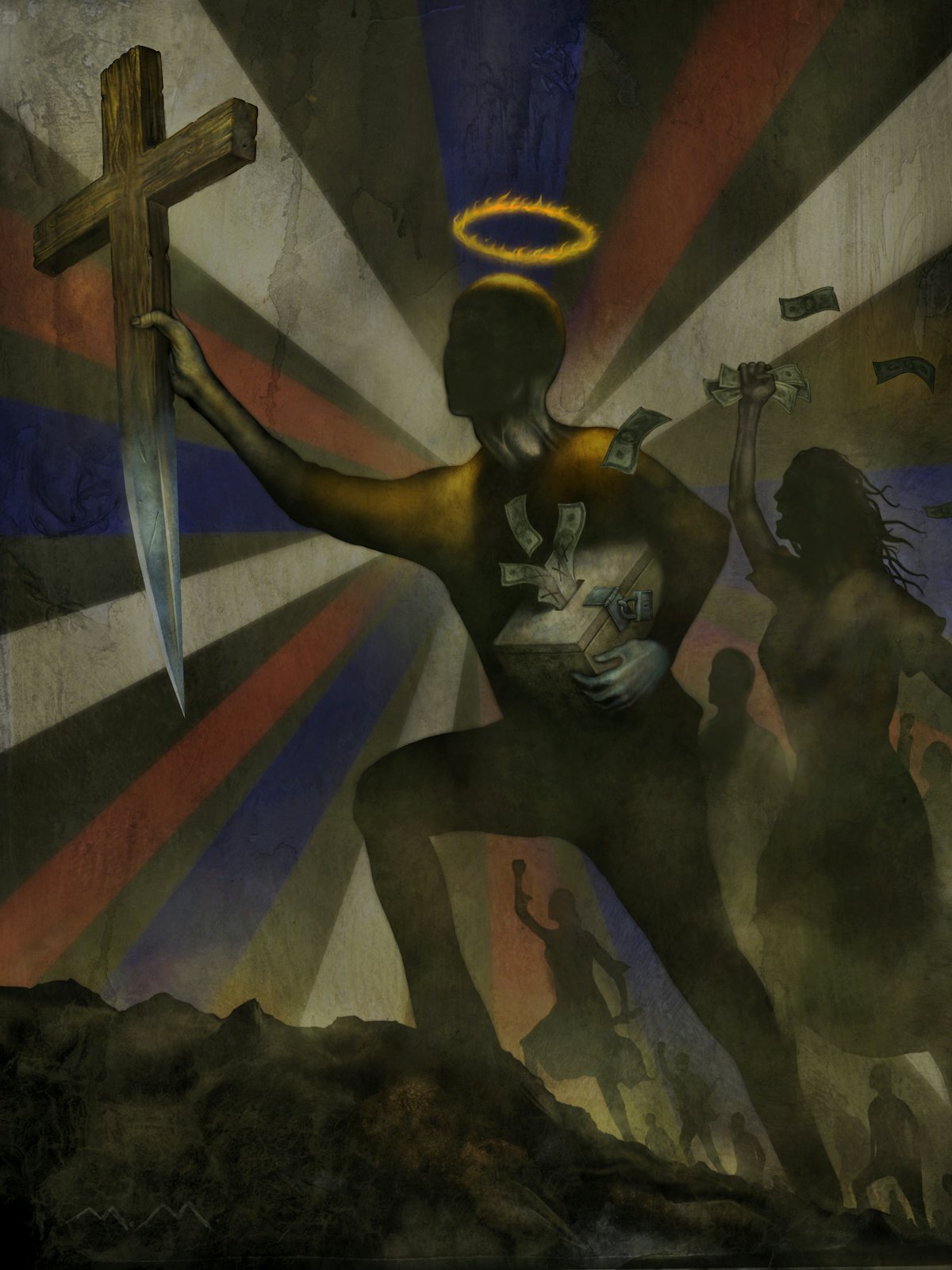As in most versions of the song, the transition from the Christian nation myth to radical free-market doctrine is seamless. According to Connelly, the second reason for America’s uniqueness and specialness “is the free-market system, which of course is God’s biblical economy.” Next comes the fear and loathing. “There’s a far left now that doesn’t believe in God, they’re godless completely. They believe the state is the supreme being,” Connelly says on the podcast. “It’s actually a godless, communistic, Marxist style of government.”