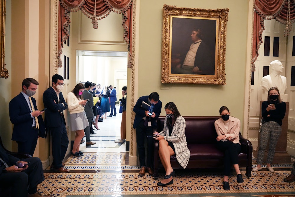 Last Thursday night in the Navy Yard neighborhood of Washington, D.C., a few dozen Hill staffers, mostly in their twenties, wearing their finest business casual, stood around chatting about who worked for which lawmaker and complaining about niche annoyances like the timing of floor votes. When not running interference for their bosses, these indispensables of the nation’s capital can be found at networking events disguised as parties, like this gathering, or huddled around discounted beers at the cheapest happy hours throughout the city.