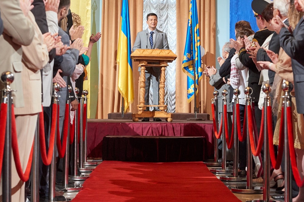 It’s easy to see how a show like this could be grating and condescending. In its sympathetic portrait of a good-government reformer struggling against both a corrupt political system and a venal and ungrateful public, it has some parallels to Parks and Recreation, which ended its seven-season run in 2015, the same year Servant premiered. But while Parks and Recreation (and the strain of liberal politics it channeled) never found a huge audience, Servant clearly resonated with ordinary Ukrainians. Zelenskiy has been compared to Jon Stewart, and indeed there’s something of The Daily Show’s George W. Bush–era heyday to his comedy—a broadly accessible goofiness mixed with earnest lectures about the failings of the political class. Stewart’s anti-political, commonsense style—exemplified by the vacuous “Rally to Restore Sanity” he and Stephen Colbert headlined on the National Mall in 2010—has drawn sharp criticism from leftists who see it as toothless in the face of an organized and illiberal right. But there was a time when it seemed like a righteous appeal to a jaded electorate—arguably, this was Barack Obama’s pitch during his history-making first presidential run in 2008, at the height of Stewart’s popularity. There’s a lot of that spirit in Servant, and it’s understandable why Ukrainians, fed up with their broken and regionally polarized political system, decided to give Zelenskiy a chance to govern the way Goloborodko does on the show.