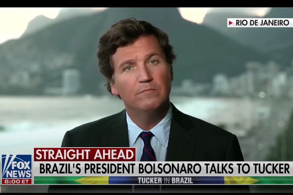 Last year, Tucker Carlson traveled to Budapest to celebrate Viktor Orbán, Hungary’s aggressively illiberal and xenophobic prime minister, by filming a week of episodes that included “lessons” the United States could draw from his anti-democratic, immigration-restrictionist rule. In a sit-down interview, Carlson nodded approvingly as Orbán railed against “post-Christian, post-national societies” and their “very risky” mixture of Muslim and Christian communities. This week, Carlson visited another country undergoing an alarming democratic erosion and fawned over its far-right ruler: Brazil’s Jair Bolsonaro.