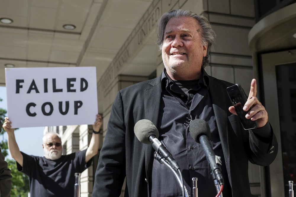 In this week’s posturing before the Washington, D.C., U.S. District Court by the legal team defending Bannon, one thing became clear. These guys are not in it to win it. At the very least, they’re in it for the appeal. And if, in the meantime, they craft a counternarrative that works for Bannon’s podcast audience, riling up the nativist right, introducing more general chaos into American political discourse, and somehow advancing Bannon’s cause of spreading worldwide fascism, well, so much the better.