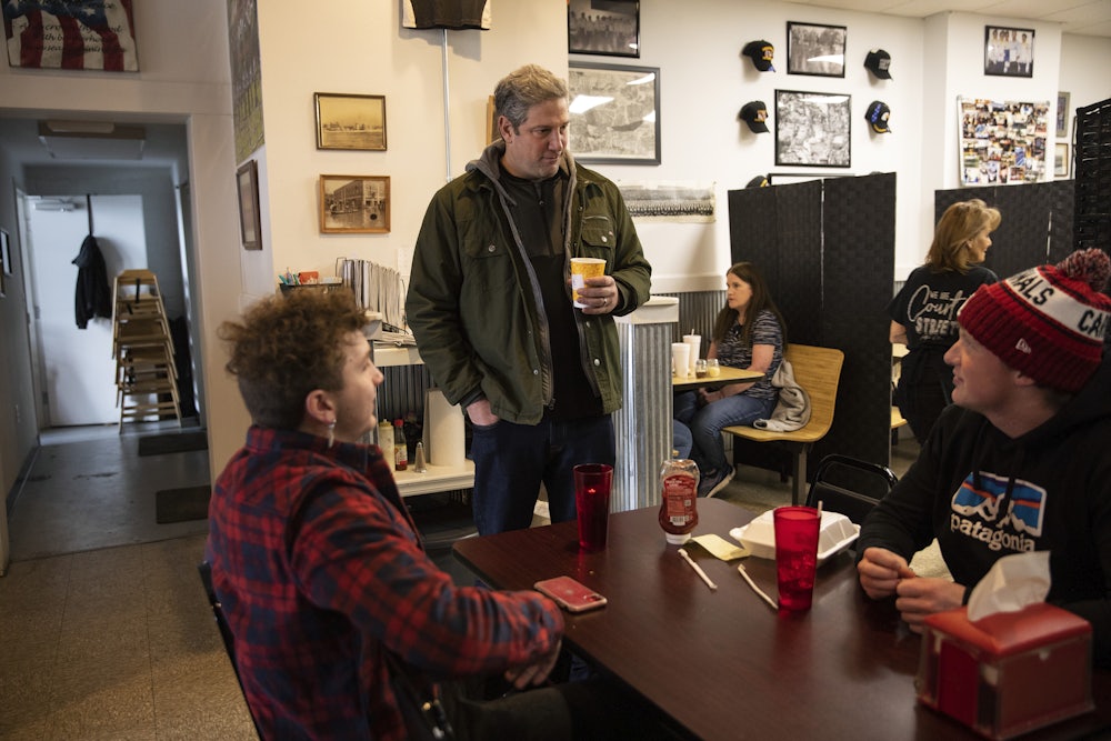 Ryan parts company with Trump Republicans most obviously in his vigorous support for labor. The AFL-CIO gives him a lifetime score of 98 percent, the same as Representative Bobby Scott, the Democratic chairman of the House Education and Labor Committee. The very first entry on the “issues” page of his campaign website is titled “Cutting Workers in on the Deal,” and in the first paragraph he voices support for the Protecting the Right to Organize (PRO) Act, which would eliminate many significant legal barriers to unionization, and for a $15 minimum wage. Unions build communities, Ryan told me. He spoke movingly of his grandfather, a steelworker, whose union job paid him sufficiently for 40 hours’ work per week that he had time to be head usher for his church and to help build an elementary school for the church. “He gave back,” Ryan said. “He participated in the life of his community.” The words “union” and “labor” appear nowhere on the issues page of Vance’s campaign website. That’s very much in line with Trump, who frequently expressed distaste for unions on Twitter and made consistently anti-labor appointments to the Labor Department and the National Labor Relations Board.