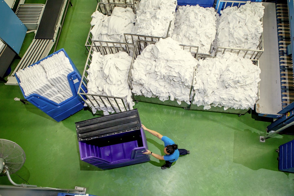 Pitkin tells the story of a five-year union organizing campaign, begun in 2003, at an industrial laundry owned by Sodexho in Phoenix, Arizona, where wages were low and working conditions were brutal, unsafe, and unsanitary. Workers sorted and washed bags of linens from major institutions like hospitals, working at breakneck pace while operating massive, dangerous industrial laundry machines. “Sometimes there are syringes and scalpels, sometimes body parts, wrapped in the linens,” a worker named Alma tells Pitkin. Safety gear is absent or insufficient, and “there is a lot of blood and puke and feces.” Alma’s coworkers have stories of limbs crushed while working the machines.