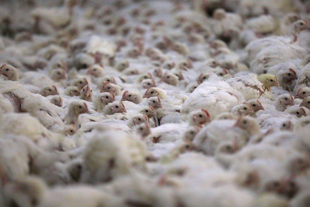 The disease spread rapidly, first up and down the East Coast, then westward toward the heartland. An outbreak in mid-March at a single farm in Iowa forced the slaughter of 5.3 million chickens. According to the Storm Lake Times Pilot, the birds were killed by “VSD+,” or ventilation shutdown: The air in the barns was turned off so that the temperature rose until the birds both suffocated and overheated. (The “plus” refers to the suggested addition of more heat and/or carbon dioxide, which helps asphyxiate the chickens.) Activists from an organization called Direct Action Everywhere raided the plant after the culling; a video they released showed that a few dazed chickens had somehow managed to survive the heat. Corpses and viscera lined the floor.
