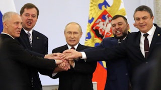And yet, amid the Soviet crumble, Solzhenitsyn revealed a different side, not only calling for Moscow to partition countries like Kazakhstan but pushing to keep Ukraine firmly in Russia’s embrace. There was no reason, Solzhenitsyn wrote, for Russia to “hack off … those parts that weren’t part of old Ukraine”—specifically singling out areas like Crimea and the Donbass, which Putin has now proclaimed as rightfully Russia’s. If Putin is overseeing an irredentist project Europe hasn’t seen since the Second World War, he’s simply following Solzhenitsyn’s playbook—a playbook developed by a man once invited into the highest echelons of Western power and once identified as a “symbol of internal opposition” to the Kremlin.