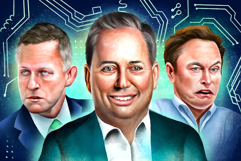The sort of social media envisaged by Thiel, Sacks, Musk, and other tech moguls might come to fruition if Musk’s bid to acquire Twitter closes, per a judge’s ruling, by the end of the month. It will also be a boon to Musk’s friends who invested in and supported the takeover. The recently disclosed text messages showed Musk being peppered with pitches about rejuvenating Twitter from PayPal mafia members and sycophantic hangers-on. In one set of messages, in which names were redacted, someone discussed letting “the boss himself”—Trump—back on the platform. The comments included some war-gaming and bluster about deplatforming political enemies. Masters was floated as a so-called VP of Enforcement. If there is to be a new regime adjudicating speech on Twitter—which would be set to go private under Musk’s ownership, removing it from certain corporate disclosure requirements—it might be overseen by people like Masters who share the same worldview as Sacks.