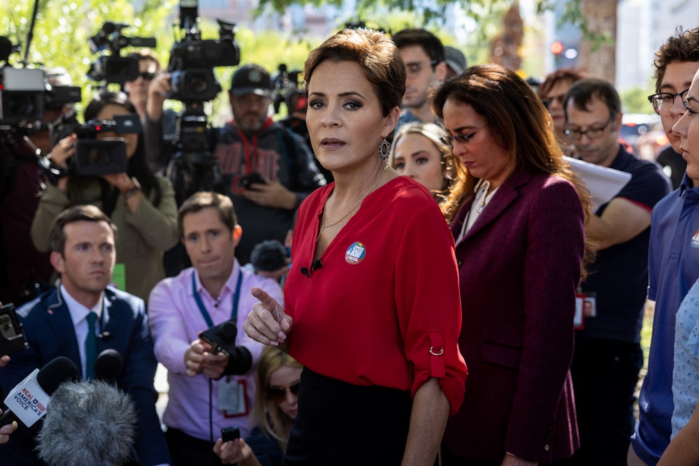 Around 9:30 a.m. on Tuesday, Lake responded to problems with some vote tabulators in Maricopa County by telling voters not to go to a different location instead, saying if they did their ballot “likely will not count,” which reporters debunked as misinformation that would possibly disenfranchise her own voters. Nevertheless, her post was retweeted more than 10,000 times by the time she spoke to reporters after casting her own vote in Maricopa County a few hours later. “We came right down into the liberal heart of Phoenix to vote,” Lake said, around 1 p.m., “because we wanted to make sure we had good machines. And guess what?” She leaned into the narrative. “They had zero problems with their machines today.” Lake predicted she would win and serve two terms. She added, as a rejoinder directed to the media, “I’m going to be your worst frickin’ nightmare for eight years.”