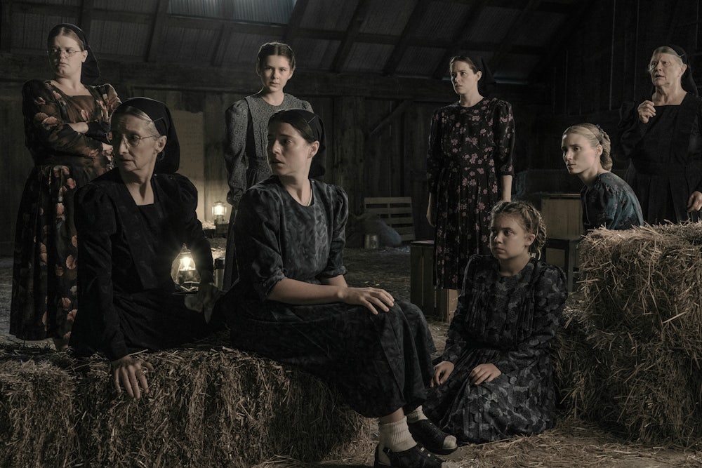 It is considered gauche to expect art to provide answers. But the question central to Women Talking—what is solved by punishing individual acts of violence when they are the product of a broader culture?—is so vital that it is hard not to want at least a hint. Polley’s film plays on that desire: Our impatience with the characters’ circular dialogue, our bafflement at their strange jokes (one of the younger women decides to pull a prank mid-debate and jumps off a ledge, landing into a pile of hay), are part of the film’s message. If the characters’ conversation feels off to us, odd or overly theatrical, the question becomes: Why are we so sure we know what victims of this kind of violence should sound like?