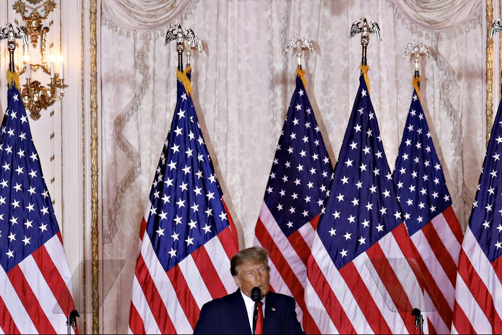It’s up to three parties whether Trump will have the opportunity to build that case to the public once the campaign begins in earnest: the special counsel just appointed to lead the January 6 and Mar-a-Lago documents investigations, Republican primary voters, and the Republican elites now straining to convince those voters that Trump is a liability—a task made awkward by the fact that there are now few substantive differences between Trump and the party establishment figures trying to disavow him. National Review’s latest and perhaps last major statement against Trumpism, which leads with a summary of his accomplishments, captures that tension well. “To his credit,” editors wrote, “Trump killed off the Clinton dynasty in 2016, nominated and got confirmed three constitutionalist justices, reformed taxes, pushed deregulation, got control of the border, significantly degraded ISIS in Syria and Iraq, and cinched normalization deals between Israel and the Gulf states, among other things.”