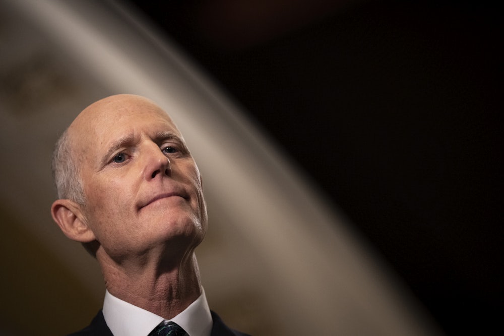 In early November, Scott was simply trying to safeguard what he and other Republicans assumed would be a wave election in their favor. He was also trying to guard against the possibility that he might have a hand in undoing the expected election night victory. You see, Johnson’s comments helped to resurface Scott’s own scheme for Social Security and Medicare, which had a similar mechanism to put it in constant danger: One of the more controversial components of his 11-point “Rescue America” plan was a proposal to sunset every piece of federal legislation, including Social Security and Medicare, every five years. Republicans had until that point spoken fairly openly about their desire to slash the country’s entitlement programs, but Scott was being too slick. Like Johnson, he was still more than happy to use misleading claims about Social Security “going bankrupt” as an impetus for reform; to save the programs, you had to destroy them.