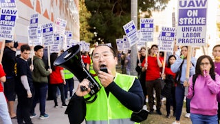 According to internal research done by their union, UAW 2865, half of grad workers in the U.C. system pay half their incomes in rent. Ninety-two percent are “rent-burdened,” meaning their landlords claim more than 30 percent of their pay. While U.C. President Michael Drake enjoys a $6.5 million six-bedroom in Berkeley paid for by the university,* grad workers sleep on couches, in cars, or in shelters. They pile into overcrowded housing or commute from hours away. On November 15, 19,000 graduate students joined three other UAW organizing efforts, representing postdocs, student researchers, and academic researchers, to inaugurate a strike of 48,000 people—the largest strike of academic workers in U.S. history. “Either you’re striking for yourself because that’s the position you’ve been put in, or you’re striking for your comrades, your classmates, your departmentmates,” Magally A. Miranda Alcázar, a striking teaching assistant in Chicano Studies at the University of California, Los Angeles, told me.