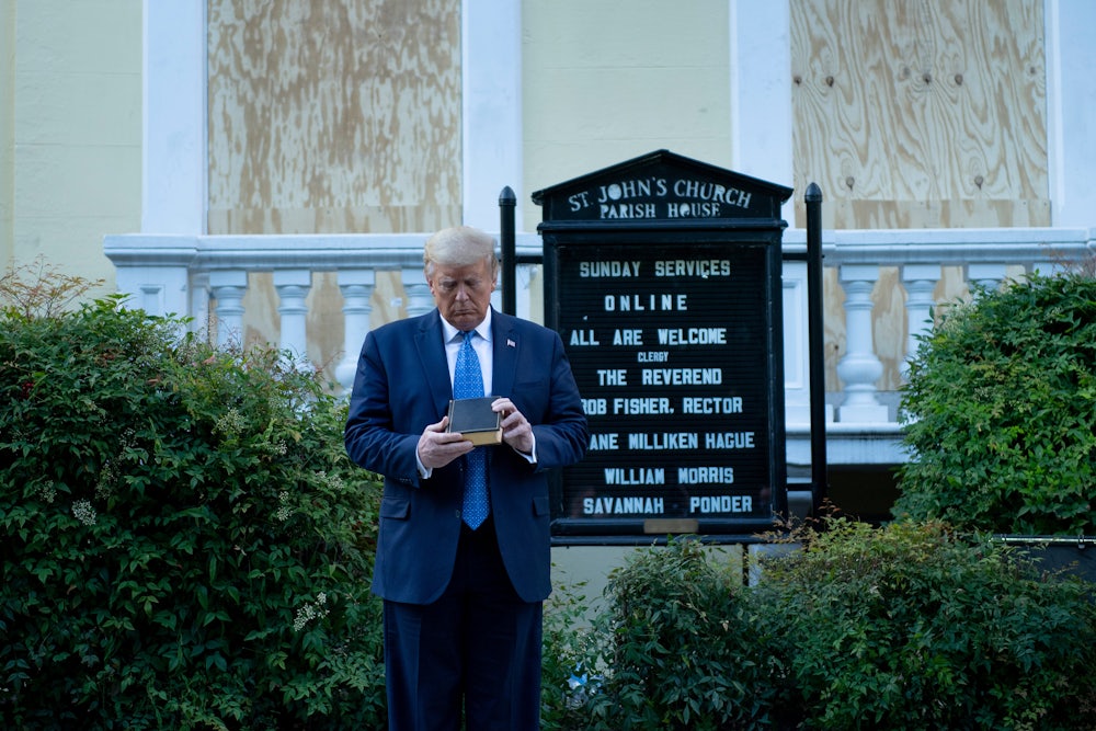 If a single image could encapsulate the Trump era, perhaps it is the infamous photo of the former president standing alone on a sidewalk in front of a boarded-up church with a stern expression and a Bible in his hand. The shot was captured in June 2020, shortly after police had used tear gas to clear Black Lives Matter protestors from Lafayette Park outside the White House, where they had gathered to voice their anger about the murder of George Floyd. After the crowd was rousted, Trump marched from the West Wing to St. John’s Church for a photo op intended to cast himself as the president of law and order. With all the righteousness of a hellfire preacher, Trump boasted that America is “the greatest country in the world” and that he would “keep it nice and safe.” The enemy in his speech wasn’t a great Satan; it was ordinary citizens exercising their constitutional rights.