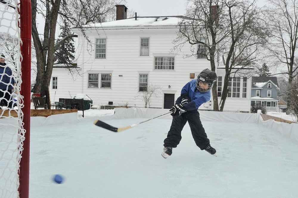 Zach Weston, who’s built and maintained his backyard rink in Ontario for around 17 years, says the same. “In the winter time people get cooped up in their houses and stay indoors. What I really love about having a rink is it gives us a meaningful purpose to get outside, enjoy it, and embrace winter.” During the pandemic, when inside mixing was banned, the rink became especially important to local kids desperate for something to do and somewhere to go. “It would not be uncommon on any given night of the week to have 15 to 20 kids all playing hockey outside in my in my yard,” Weston says.