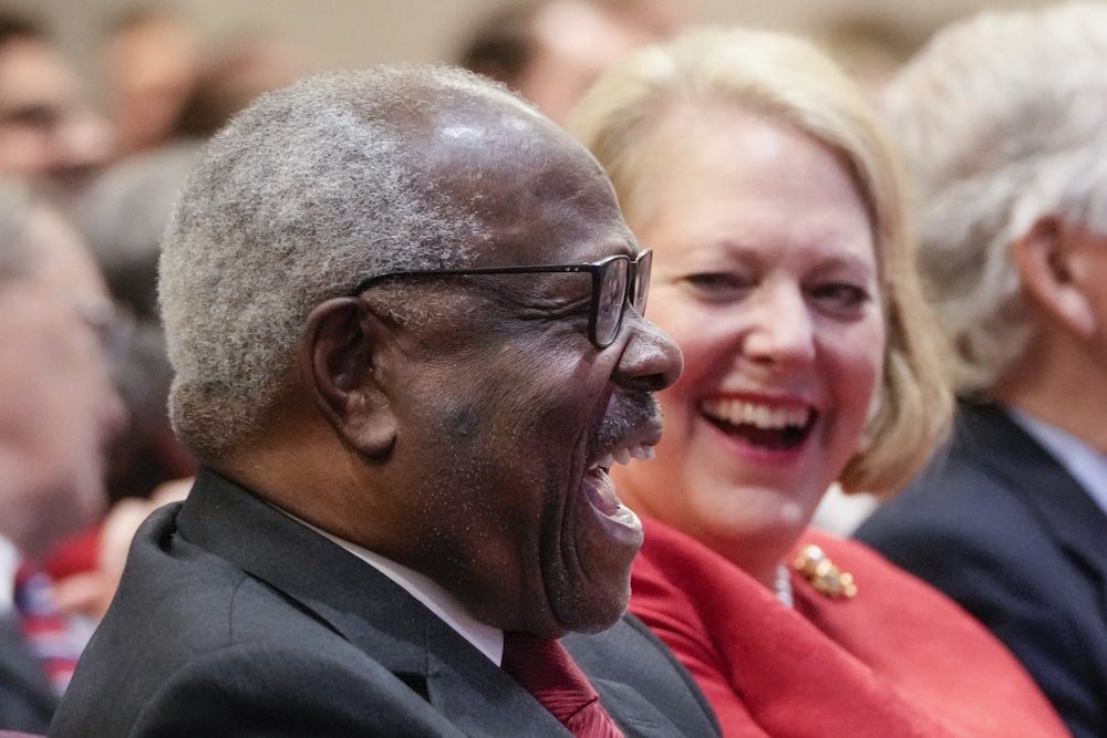 Not the Thomases. Make no mistake: The entire right-wing bloc has damaged the court’s credibility. They sit in service not of the law, and not even by this point of “originalism,” whatever that elastic concept means anymore. They are out to remake the country in a radical way. Thomas signaled that more loudly than anyone, in his instantly infamous Dobbs concurrence overturning Roe.