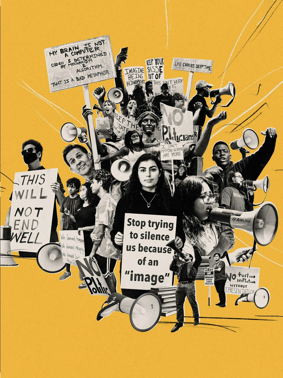 One thing I found: More than half a century after the Berkeley Free Speech Movement set a new standard for campus protest, student speech is as robust as it ever was. Students are speaking. Some quite confidently and through bullhorns. And right-wing provocateurs roam the college speaking circuit. Confrontations between such speakers and lefty students are what make news, but when such talks go off without incident, which they do more often than not, it isn’t news. Inside classrooms, history and political science students are still learning and not just shouting one another down, arguing about critical race theory or whether enslaved people were really happy. But something else is changing: Conservatives who have long complained that their views are unwelcome on campuses are asking for protected space—intellectually at least. Republican lawmakers who used to scoff at trigger warnings and safe spaces for tender liberal snowflakes are now codifying speech restrictions to protect whites and males from feeling guilty about the histories of oppression. As campuses have become stage sets for Wokeism versus Trumpism, universities struggle to find a middle ground between encouraging protest and the optics of students confronting battle lines of RoboCop black. Administrators must navigate a course between the Scylla of an expanding definition of hate speech on the left and the Charybdis of increasingly bold deployment of that speech on the right.