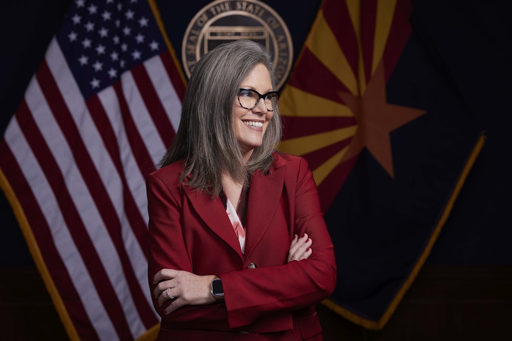 The sun was still rising on a Wednesday in early January as the crowd filtered into the ballroom of a hotel in downtown Mesa, Arizona, just outside Phoenix. About 350 people, a mix of business leaders, area city and school officials, and a handful of firefighters, had come to a buffet breakfast to hear from their newly inaugurated governor, Katie Hobbs. One of three Democrats who flipped a Republican governorship in the 2022 midterms, Hobbs was spending her second week in office touring Arizona for a series of State of the State addresses. During her remarks, she highlighted several of her priorities, which mainly focused on boilerplate bipartisan appeals rather than bold declarations of a liberal shift under new Democratic governance: investments in public education, addressing rising costs, and securing water.