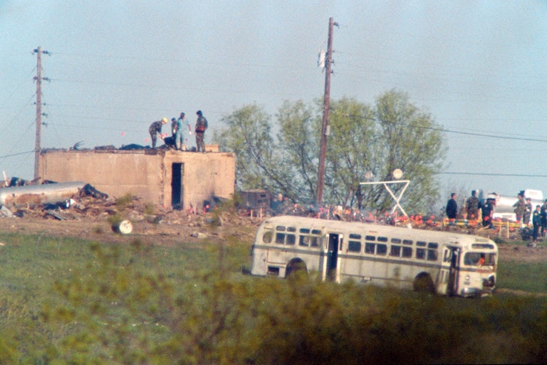 The feds never forgave the Davidians. While some negotiators and other agents established a rapport with Koresh and showed a genuine interest in ending the standoff without further bloodshed, others taunted and antagonized those at Mount Carmel. Hubris drove the initial ATF raid and the decision to halt negotiations and flood the Davidian compound with tear gas on April 19, 1993. Virtually every step taken by federal law enforcement—the forces of Babylon, as Davidians called them—confirmed Koresh’s “prophecies” concerning religious persecution and an overzealous, callous, and incompetent federal government. “As the fire spread” through the Mount Carmel compound, Cook writes, “one of the largest government forces ever gathered on American soil did little but watch and wait.” Firefighters were kept at bay out of fear that the Davidians might fire upon them. Some “672 federal agents, 131 Texas Department of Safety officials, 31 Texas Rangers, 35 local police officers,” 15 U.S. Army soldiers, and 13 Texas National Guardsmen sat and stared as 76 people suffocated, suffered blunt-force trauma, burned to death, or died by suicide or “mercy killing.”