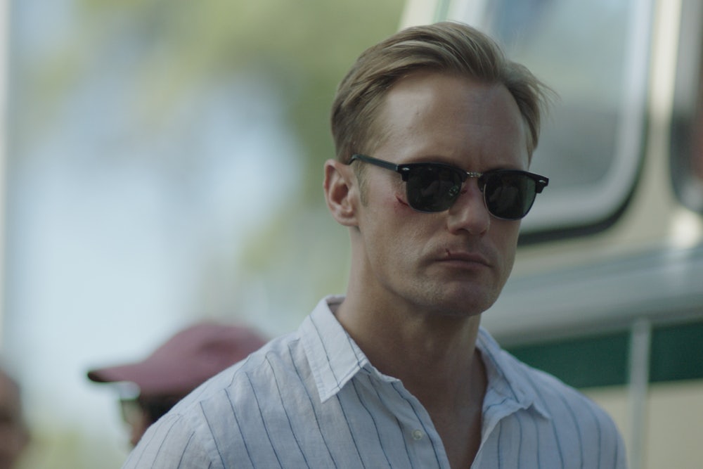 Infinity Pool casts Skarsgård as James Foster, a struggling author on holiday at a tony seaside resort in the scenic but poor fictional nation Latoka. James is a talentless hack, entirely dependent on the patience and patronage of his well-to-do wife, Em (Cleopatra Coleman). He is in desperate search of inspiration. He finds it in the form of a fun-loving couple, Gabi and Alban (Mia Goth and Jalil Lespert), who lure James and Em off the gated resort property for a day of drinking and joy-riding.