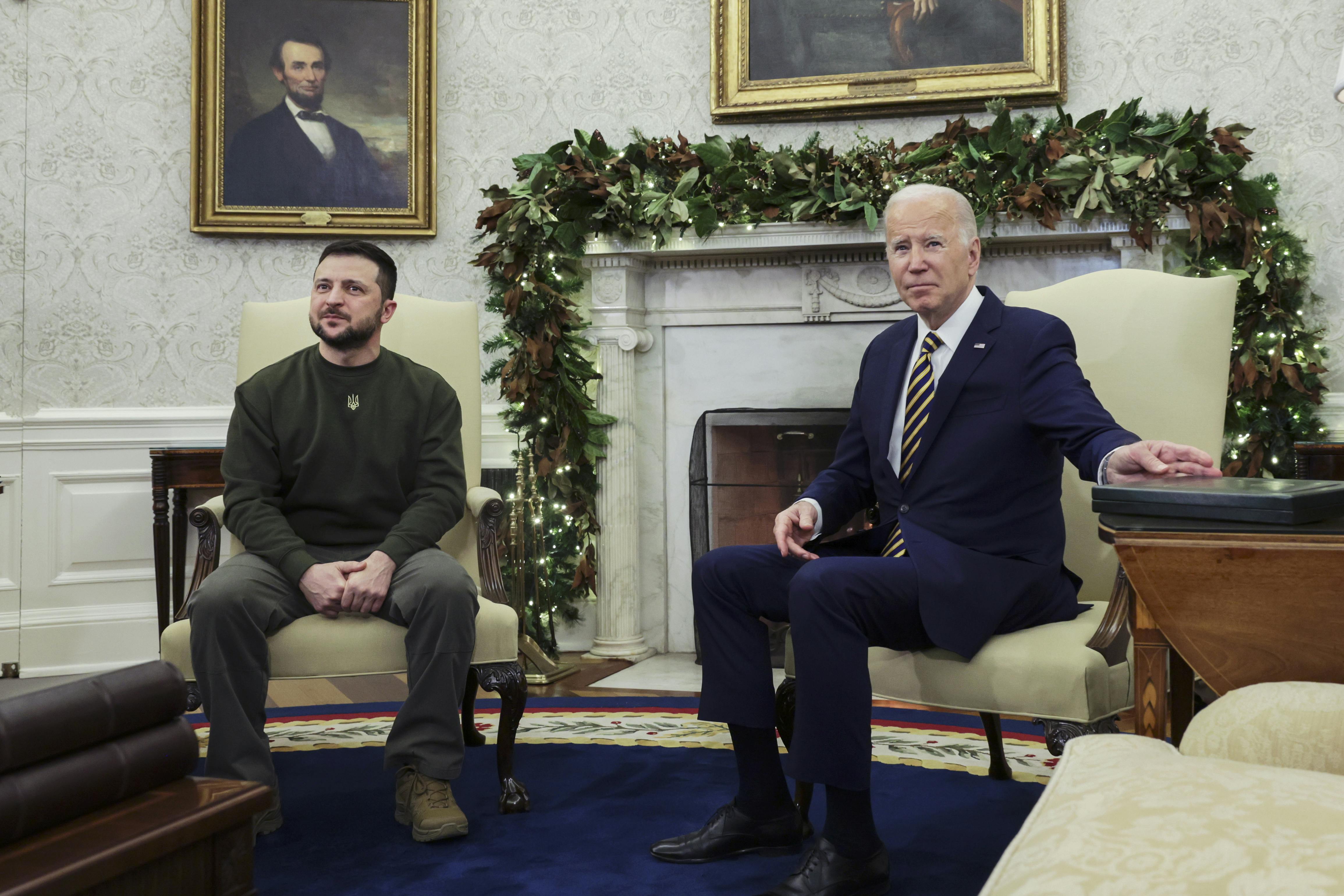It surpasses them because while Kennedy and Reagan were both on the right side of history, they made these important declarations in safe spaces—friendly territory, surrounded by the usual phalanx of guards. Biden was not. As you may have read or heard by now, he is now the first president since Abraham Lincoln to visit a war zone that wasn’t under U.S. control or where hostilities hadn’t already ceased. He strolled outside with Volodymyr Zelenskyy under skies that Russian missiles are still capable of puncturing. Russian hardware has been fired at Kyiv as recently as late last month. It’s not inconceivable that they could have, as they say, lit Biden up.