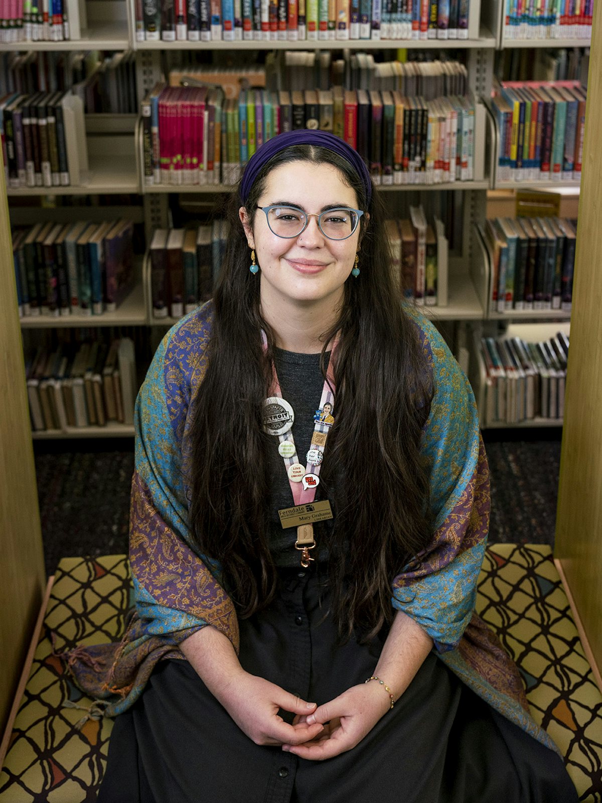 “The reason I wanted to be a children’s librarian, specifically, is because it’s one of the few places where a child is treated as their own entity,” said Ferndale youth librarian Mary Grahame Hunter, who had invited me to visit that day. We were sitting in the middle of all this, the zooming and browsing and asking. “It’s a place designed for children’s needs first,” she emphasized. Her long brown hair hung in a braid down her left shoulder, and her eyes were framed in blue-gray glasses. Mister Rogers smiled from the enamel pin on her lanyard, above the phrase YOU ARE SPECIAL. Hunter looked, as she generally does, incredibly much like how a kid might imagine a librarian; she wore her clear pride in her work lightly.