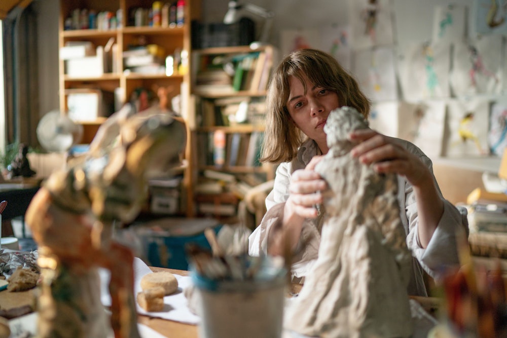 The lighter touch of her new film, Showing Up, marks something of a tonal departure. Set in the insular world of fine art, the film follows a sculptor, Lizzy (Michelle Williams), navigating a series of personal and artistic crises in the week before her new show opens. Her apartment has no hot water, and her landlord, Jo (Hong Chau), who’s also her neighbor and friendly professional rival, has been slow to get it fixed, partly because she’s prepping for two shows, something she casually boasts about to Lizzy. Jo also subtly guilts Lizzy into helping her nurse an injured bird, which Lizzy tried to quietly discard after her cat attacked it in her apartment the previous evening. Meanwhile, her brother is in the midst of a mental health crisis, two mooching boarders are taking advantage of her oblivious father, and her mother offers little emotional support.