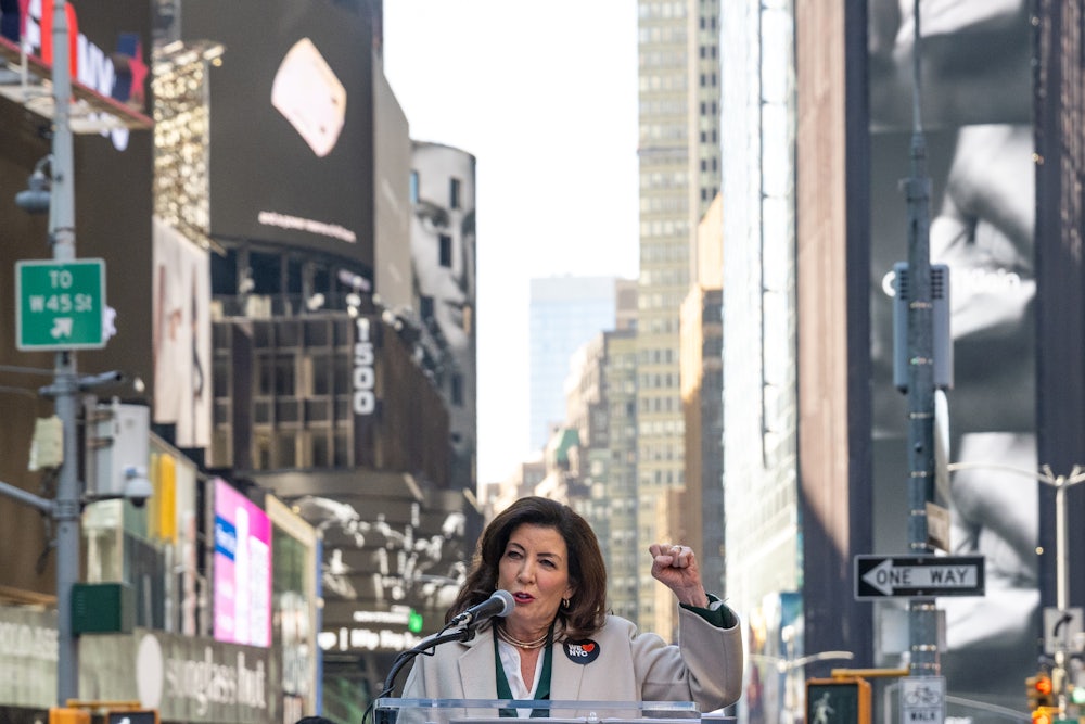 When New York Governor Kathy Hochul first took office, New York Democrats had reason for hope. Hochul rose to power after a report conducted by the state attorney general’s office found that her scandal-plagued predecessor, Andrew Cuomo, had sexually harassed at least 11 women, triggering his resignation. Cuomo’s fall was all the more striking for having come so soon after the peak of his popularity in 2020, when media outlets crowned him “America’s Governor,” the “King of New York,” and “Crisis Daddy” for his supposedly expert handling of a pandemic that killed tens of thousands of New Yorkers. It was an open secret that he bullied and harassed staffers, reporters, and colleagues, but for a long time he also excelled at shoring up support among and stifling opposition from powerful people.
