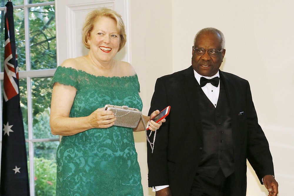 Clarence Thomas and his defenders say he’s done nothing wrong. Well, if he’s done nothing wrong, why not detail the extent of the gifts? I think it’s pretty obvious why. They must come to gargantuan sums. Supreme Court justices make only $265,600. You can’t expect a man of Thomas’s tastes and appetites to live on that. He has to fly first class and stay in five-star hotels and smoke the world’s finest cigars and sample its most complex cognacs. Hence Ginni has to rake in some dubious cash from organizations trying to influence her husband’s votes, and Clarence needs to live off the “personal hospitality” of people like Crow.