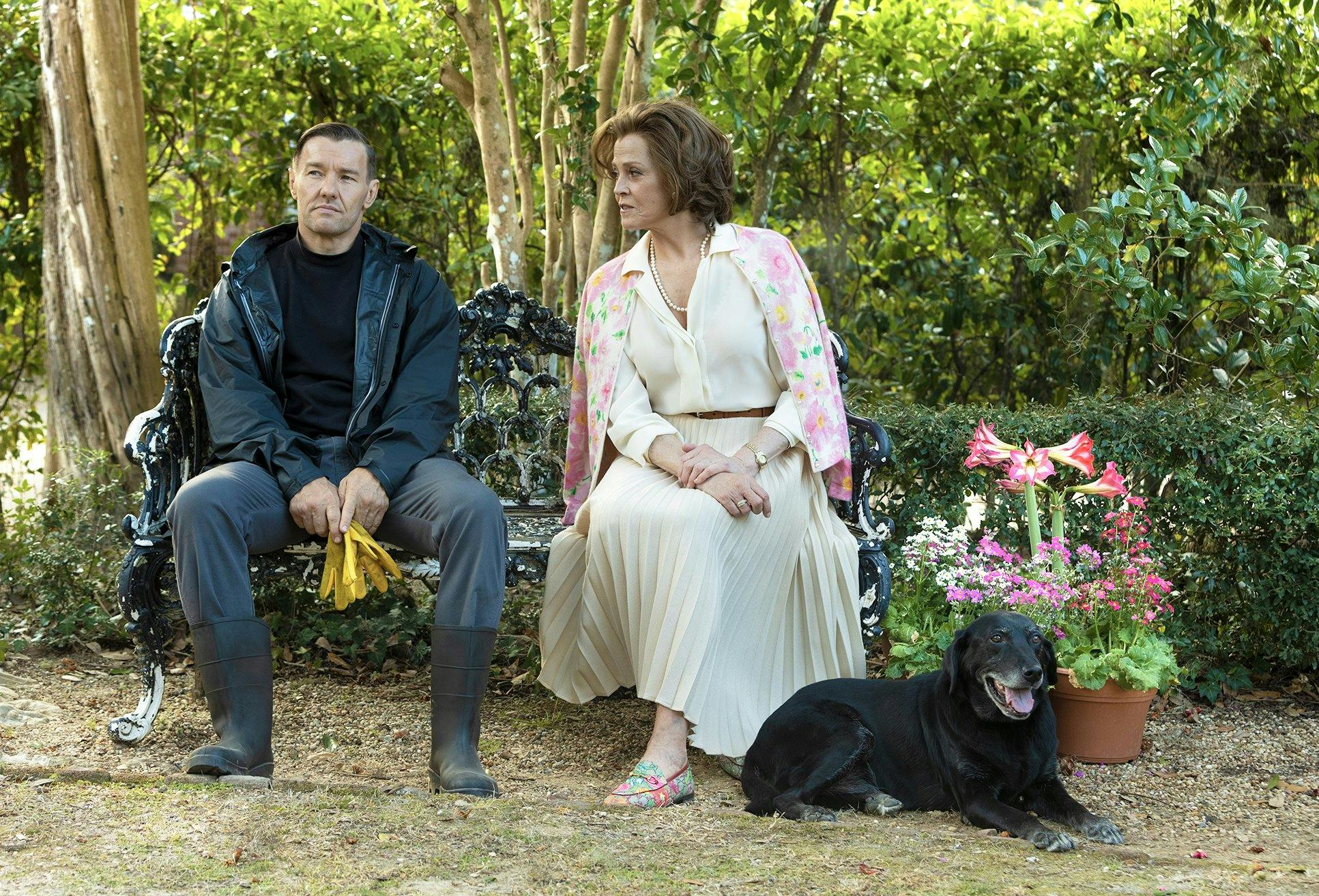 Not surprisingly for a man of Schrader’s theological background—he was raised in a strict religious household and attended a Calvinist college—this garden contains good and evil. Narvel lives on the estate in a federal witness protection program after turning on his gang. The price for Narvel’s Eden is Weaver’s Norma. She calls him “Sweet Pea,” and after drinks and settling some estate business, orders him: “Now, take me to bed.” As he undresses before her, Schrader’s camera lingers on Weaver as she relishes his body and hate tattoos. What Schrader sets up to horrify us titillates her, a reveal as unsettling as seeing the tattoos in the first place.