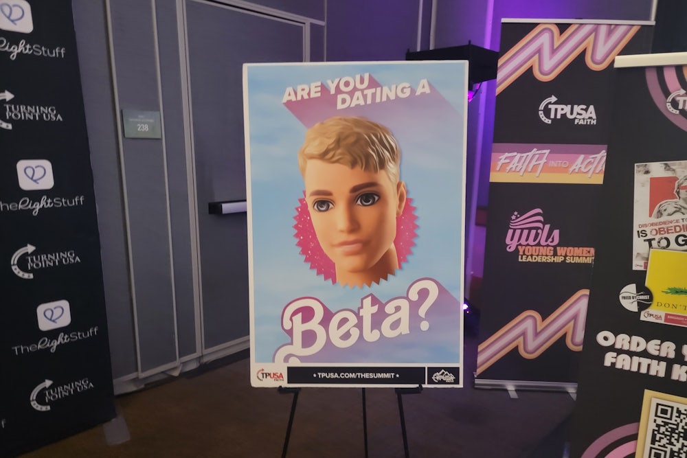 During lunch on the second day, there was an opportunity to become part of this picture-perfect family—at least, for the 15 seconds it took a TPUSA volunteer to snap a photo. The line for this opportunity hit capacity almost immediately, and it’s not difficult to see why. When conservative women talk about marriage and family, this is the life they dream of. They do not imagine a controlling jerk of a husband, nor do they dread the drudgery of child-rearing; they want an assertive but loving partner and the hard but joyful work of motherhood. This life is not for everyone—it is not for me—but for the right person, under the right conditions, it can be beautiful.