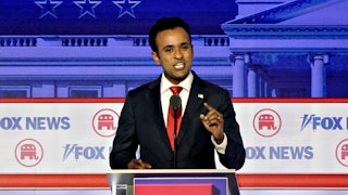 Still, with Florida Governor Ron DeSantis’s fortunes flagging, there was an also-running-shaped void to be filled, and Ramaswamy threw his body into it, mostly by doing Trump-like things (interrupting, lying, effusively praising Donald Trump). By the end of the evening, it was clear that Ramaswamy had cleared the bar—and that DeSantis’s status as the 2024 primary’s Official Second Banana was in jeopardy.