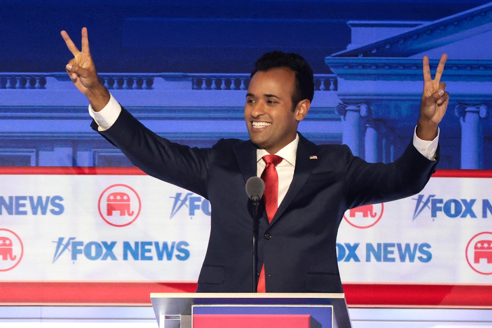 This is Vivek Ramaswamy’s moment. After a performance in the first Republican debate that upstaged the rest of the teeming field of GOP afterthoughts, the businessman was deemed to have stolen the show as the MAGA-iest candidate on the debate stage. “It is not morning in America,” he said. “We’re living in a dark moment.”