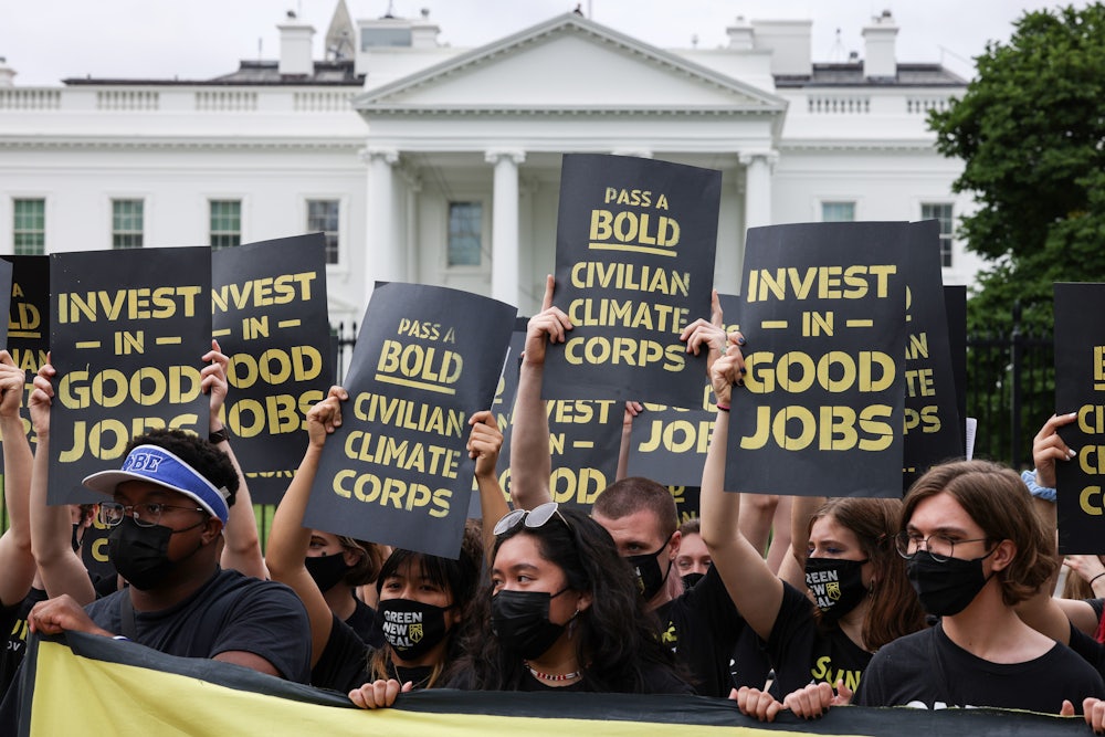 While AmeriCorps may be the closest living model for a Climate Corps, activists working with the administration to design the program have pushed for those jobs to include a much broader range of positions. AmeriCorps members, that is—often recent college graduates—are not technically government employees. Their stipends amount to less than minimum wage in most states, and they often rely on SNAP benefits to make ends meet. It’s likely that at least a significant portion of Climate Corps jobs will indeed be jobs rather than stipended placements. To the extent that they will be part of a densely unionized federal workforce, Corps members could also be unionized. The minimum length of a Corps post will be 300 hours—about the length of a summer job—and will max out at a year. The program, which won’t require a college degree, is also meant as an on-ramp to climate-related careers in the public sector or union apprenticeship programs that equip members for careers building clean energy infrastructure and other implements of decarbonization.