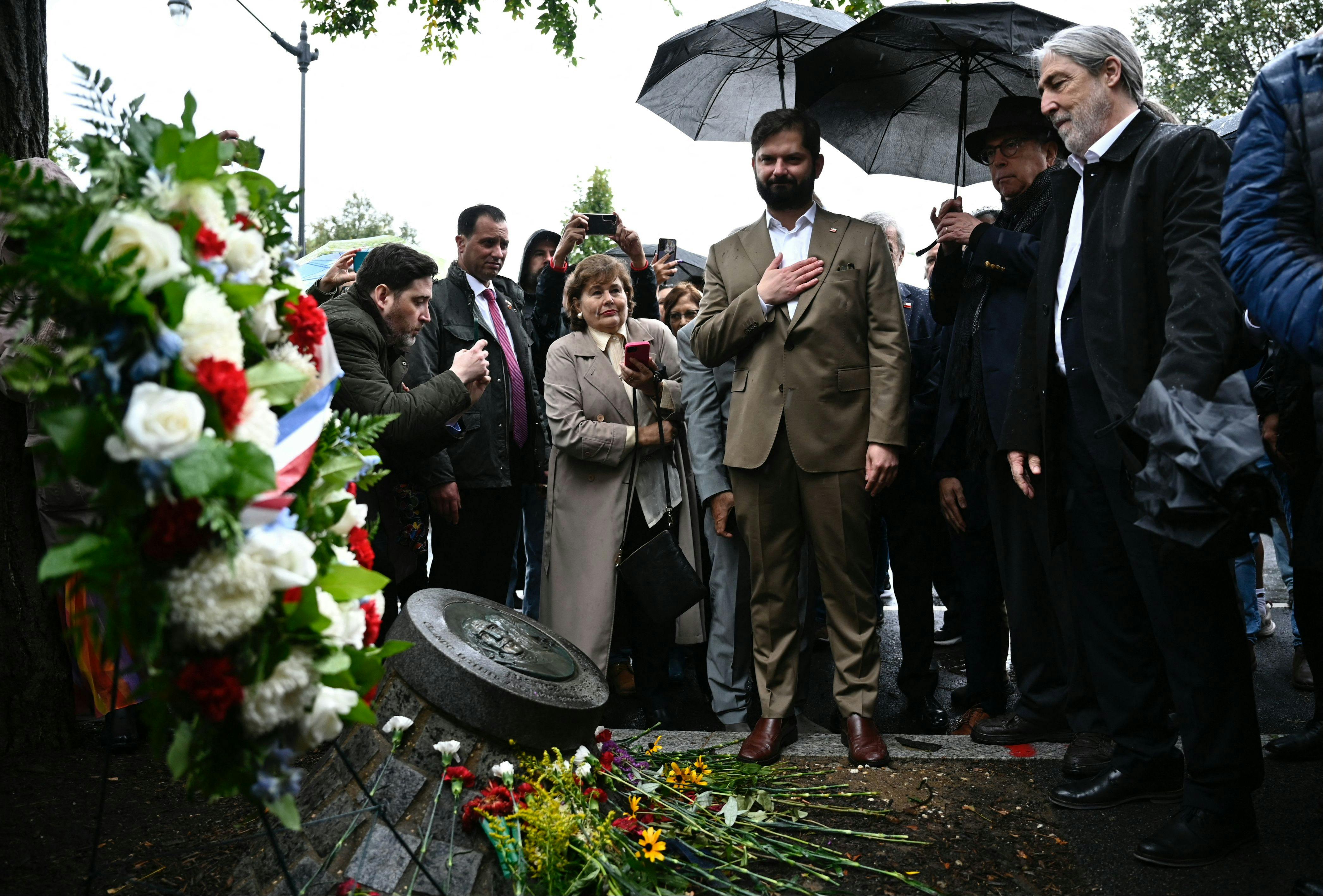 “Coup d’états are never inevitable,” said Boric. Roughly 200 people attended Saturday’s ceremony, which was dampened by rain showers on Embassy Row. “Democracy always has a path.” The left-leaning, millennial head of state quoted a poem by Pablo Neruda, my namesake and another Pinochet martyr, whom Boric was quick to point out died under “very strange circumstances.” A February report by international forensic experts revealed that Neruda, who the Pinochet regime always maintained had died of natural causes, was likely poisoned. Boric called on the Chilean courts to get to the bottom of why Neruda was silenced.