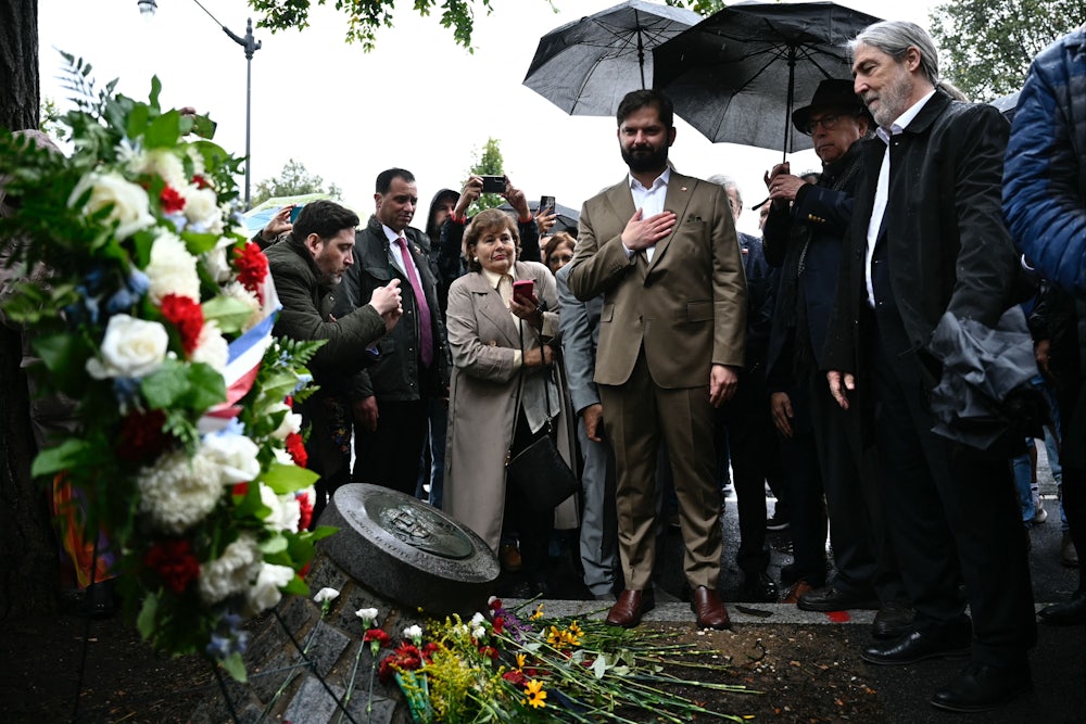 Last Saturday, Chilean President Gabriel Boric spoke, just a few yards from the scene of the crime, to commemorate the forty-seventh anniversary of Pinochet’s brazen attack on American soil. The music of Victor Jara played gently over the loudspeaker to greet the South American president’s arrival. Jara is another of the dictatorship’s martyrs. The iconic folk singer was killed in Chile’s national stadium shortly after the coup. Legend has it that Pinochet’s men broke his hands, then handed him a guitar to mock him before riddling his body with bullets.
