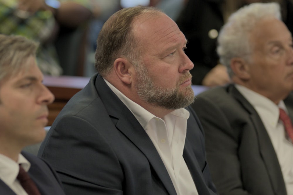 Maybe. But neither the parents nor their lawyers suffer any under illusions about what the suits can accomplish in the bigger scheme of things. Reed grants his subjects the necessary time to express the obvious point that, even if Jones is somehow forced back into a graveyard slot on Austin Community TV, it will not reverse the deep social, technological, and psychological forces that have allowed one in five Americans to doubt that Sandy Hook happened. Though Jones possesses a unique charisma—even one of the most active parents in the case, Robbie Parker, confesses to Reed, “You can’t take your eyes off him, you can’t help but follow him around, and I hate to admit that”—the world that he’s helped midwife does not depend on his national presence. Monte Frank, the town of Newtown’s attorney, was bewildered by the first hoaxers he encountered, but by 2021 he recognized their madness as “close to mainstream America now.” “We can solve the Alex Jones problem,” says the parents’ Texas attorney, “but we cannot solve the greater problem that allowed Alex Jones to flourish.”