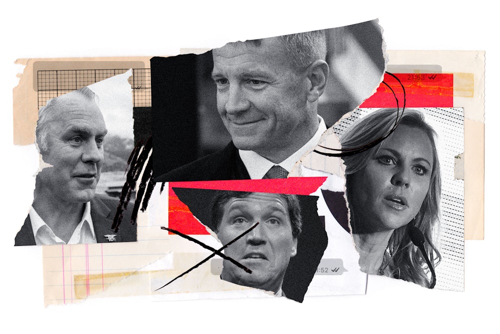 I’ve thought about that passage from the cable many times over the past several weeks as I’ve been reading excerpts from a private WhatsApp group chat established last December by Erik Prince, the founder of the military contractor Blackwater and younger brother of Betsy DeVos, the secretary of education during President Donald Trump’s administration, who invited around 650 of his contacts in the United States and around the world to join. Prince, who has a long track record of financing conservative candidates and causes and extensive ties to right-wing regimes around the world, named the group—which currently has around 400 members—“Off Leash,” the same name as the new podcast that he’d launched the month before.