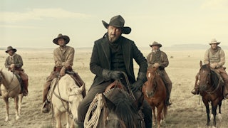 It’s also the name of a town—an upstart settlement along a winding riverbank in Arizona whose founding members are selling land and ideology as part of a package deal. While none of Horizon’s inhabitants necessarily expect to get rich quick, they’re certainly enamored of the idea that the meek—or at least the pious—will inherit the earth, the problem being that, in actuality, these settlers have staked a false claim. The San Pedro Valley is an Apache hunting ground, and Chapter One begins with an extended set piece in which the Indigenous inhabitants attack and decimate the makeshift community under cover of night, burning their homes and taking no prisoners. It’s a nightmarish sequence, leveraging uncommonly matter-of-fact brutality against a few genuinely striking and troubling images: Punctured by an Apache arrow, a dying musician clings stubbornly to his fiddle while fire rages around him; forced into the cellar of their collapsing home a mother and her teenage daughter desperately draw oxygen through the barrel of a rifle jammed upward through the soil.