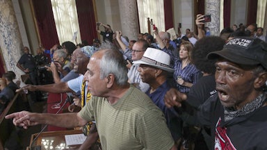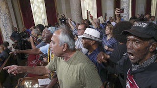 On American soil, encampments chart a line through a near-century of real estate crises—as means of survival and of dissent. In the Great Depression, mass “Hooverville” encampments of the evicted and unemployed indexed inhabitants’ needs for shelter as much as their demands for jobs and housing. In the 2008 real-estate-driven financial collapse, protesters united under the banner of Occupy Wall Street seized parks and city halls to call for economic transformation. (When the NYPD relocated unhoused people to Zuccotti Park in an attempt to sabotage the protest, organizers refused to turn them away.) Grasping for levers of national and international power, movements make a weapon of getting in the way wherever they are. Inevitably, they meet a backlash honed against those with nowhere to go.